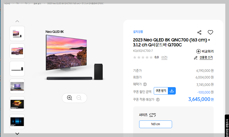 ◆ 2023 Neo QLED 8K QNC700 (163CM)